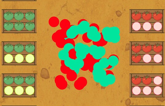 収穫された赤トマトと青(未熟)トマトを、ドラッグ&ドロップ操作で素早く仕分けて箱詰めしていくシンプルなミニゲームです。