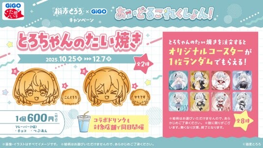 対象店舗にて、たい焼きを1点ご購入につき「オリジナルコースター」をランダムで1枚進呈いたします。もらえるノベルティは期間ごとに切り替わります。