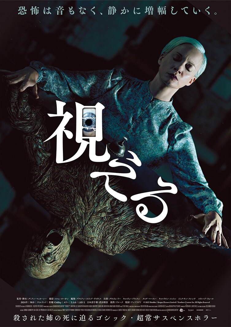 この度公開された予告映像は、郊外の屋敷に住む女性ダニーが、真夜中にガラスの片目を持つ怪しげな男から「誰かが中にいる」と警告され、助けるからドアを開けるよう訴えかけられるシーンから始まる。ダニーは惨殺され、その1年後、彼女の妹であり、盲目で霊視能力を持つダーシーは、犯人とされていた男の私物であるガラスの目を手に入れ、霊視の力で事件の真実を“視る”。犯人が見つかっていない未解決事件の真相を確かめるため、呪われた木製マネキンと共に惨殺事件のあった屋敷へ。彼女は徐々に未解決事件の闇を紐解いていくのだが‥‥。