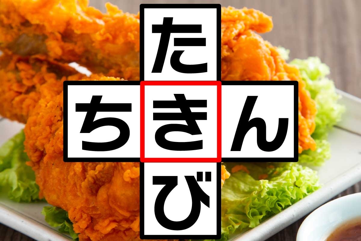 【問題】空欄に入るひらがなは? 【ヒント】タテ:火を焚くこと、火を燃やすこと、および、その火を指す。 ヨコ:日本語で「鶏」を意味する。また、鶏肉を指すこともある。