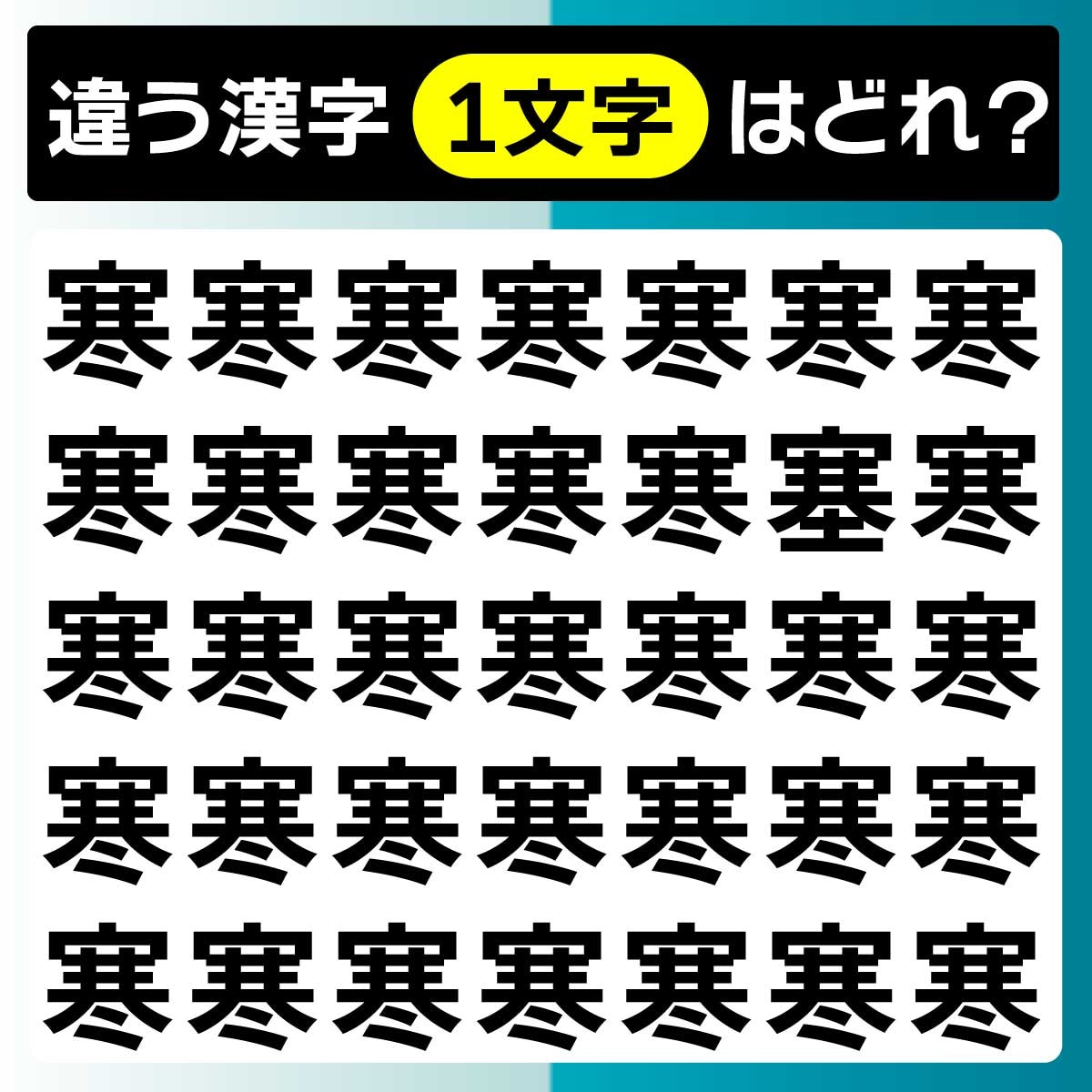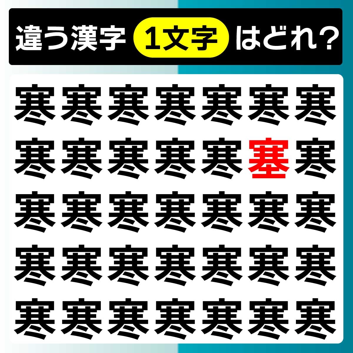 毎日配信中「毎日脳トレ」の時間です! 本日のクイズは「漢字のまちがい探し」に挑戦♪ 同じ漢字が並んでいるように見えますが、実は1つだけ違う漢字が……。よ~く探してみてください!