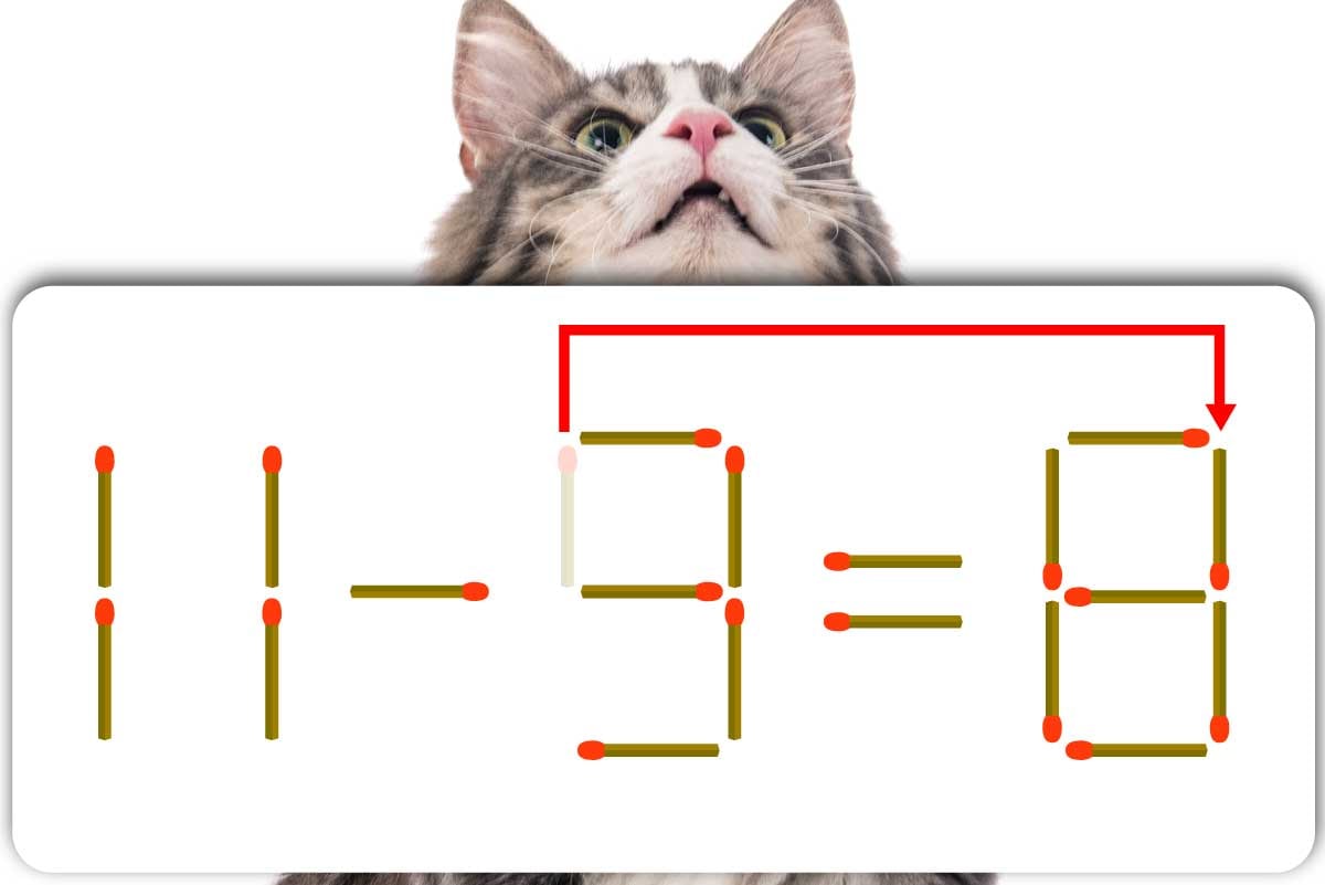 「9」のマッチ棒を1本「6」に移動させて「8」を作り、「11-3=8」にする。※解答は複数ある場合があります。