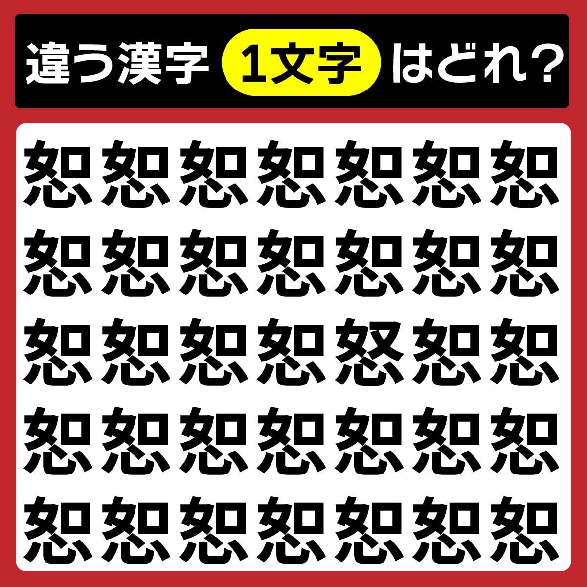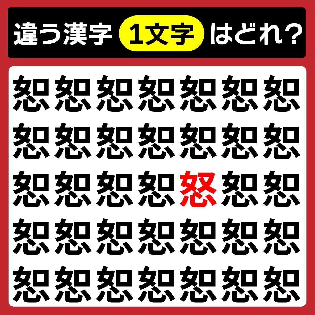 毎日配信中「毎日脳トレ」の時間です! 本日のクイズは「漢字のまちがい探し」に挑戦♪ 同じ漢字が並んでいるように見えますが、実は1つだけ違う漢字が……。よ~く探してみてください!