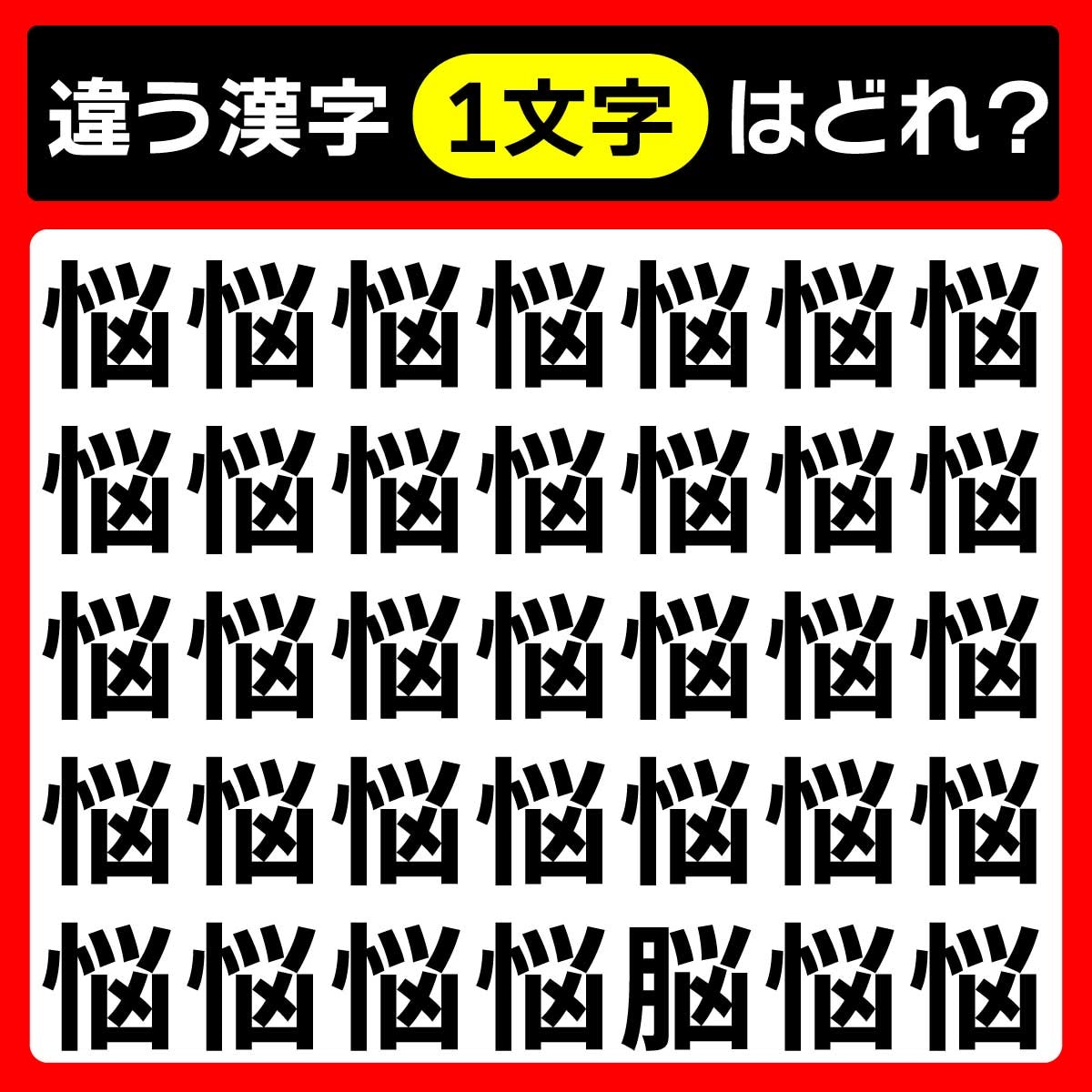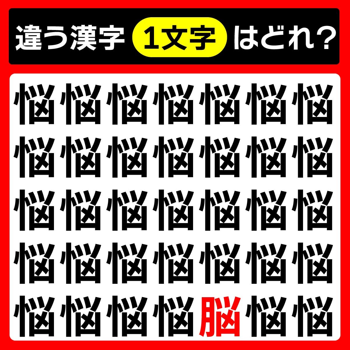毎日配信中「毎日脳トレ」の時間です! 本日のクイズは「漢字のまちがい探し」に挑戦♪ 同じ漢字が並んでいるように見えますが、実は1つだけ違う漢字が……。よ~く探してみてください!