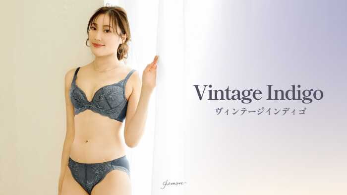 2025年秋、新たに登場したのは「ヴィンテージインディゴ」。繊細なリーフ柄のラメ入りレースが上品に輝き、くすみトーンの落ち着いたブルーが肌に馴染みながらも存在感を放ちます。