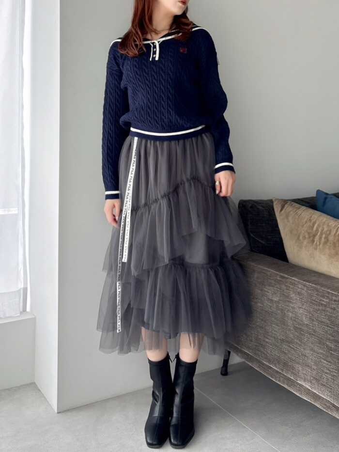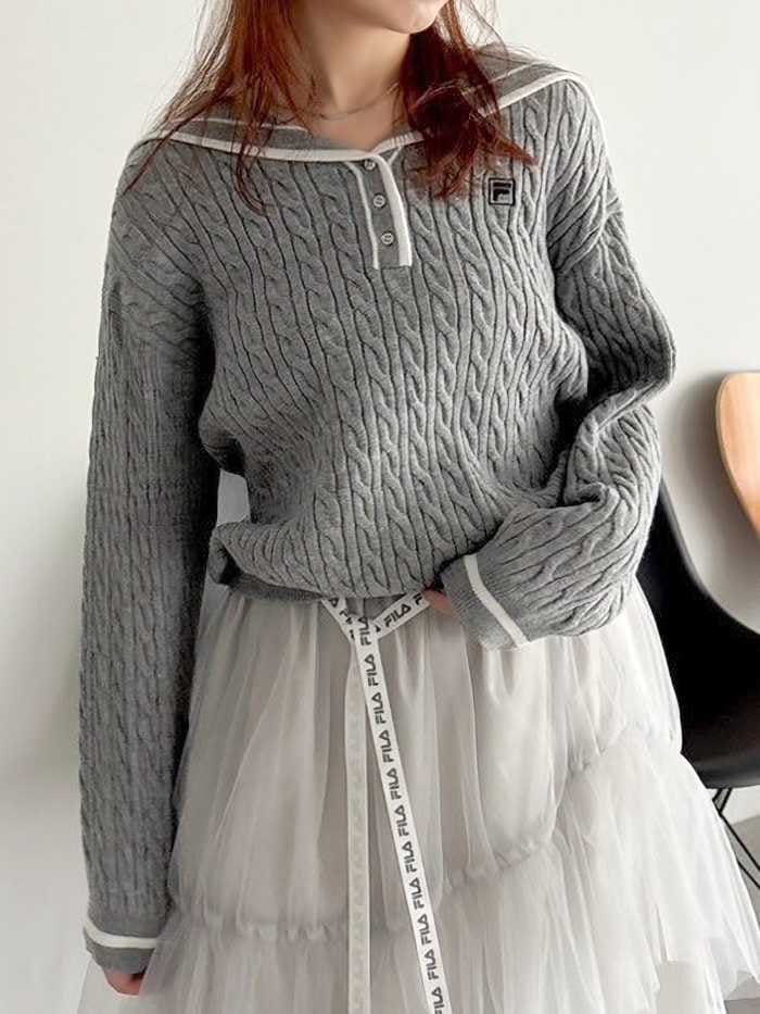 「セーラーカラーラインニットプルオーバー」(12,100円)はアイボリー・グレー・ピンク・ネイビー・ブラウンから選べ、S・M対応。