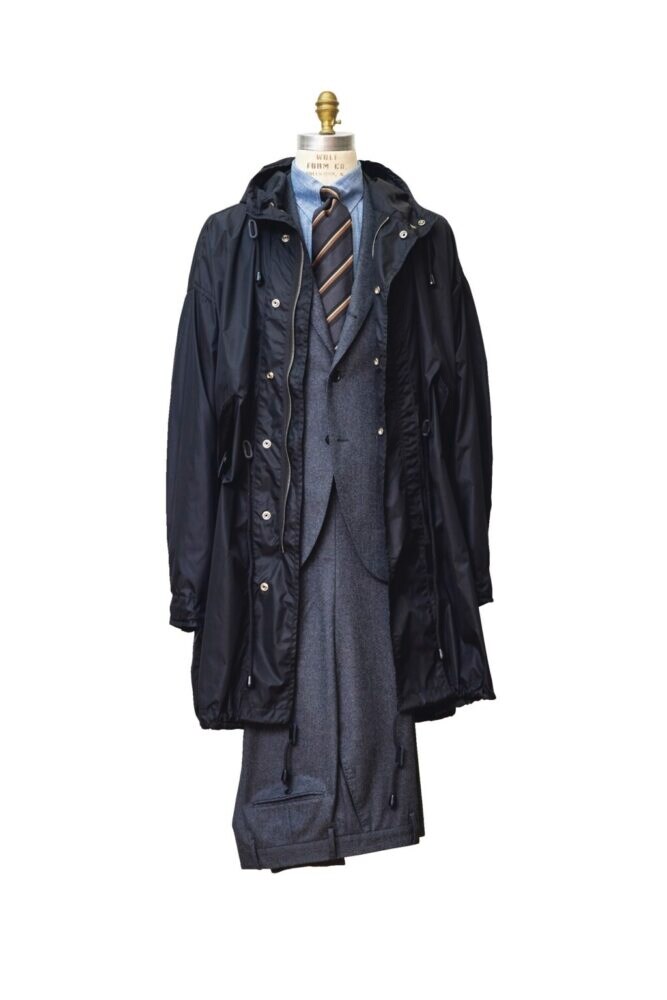 「『マルセル ラサンス』は、『サイエンス ロンドン』のフィッシュテールコートに艶やかなナイロン素材を当て込むというエスプリを披露していました。このスタイルは、『シップス』にとっても大変に共感できるものでした。『シップス』が展開する様々なスタンダードアイテムと合わせることで着こなしが洗練されるからです。そのため、『シップス』で働くスタッフの多くが自身で購入して自身のスタイリングに取り入れていました。もちろん、私もそのひとりです。
