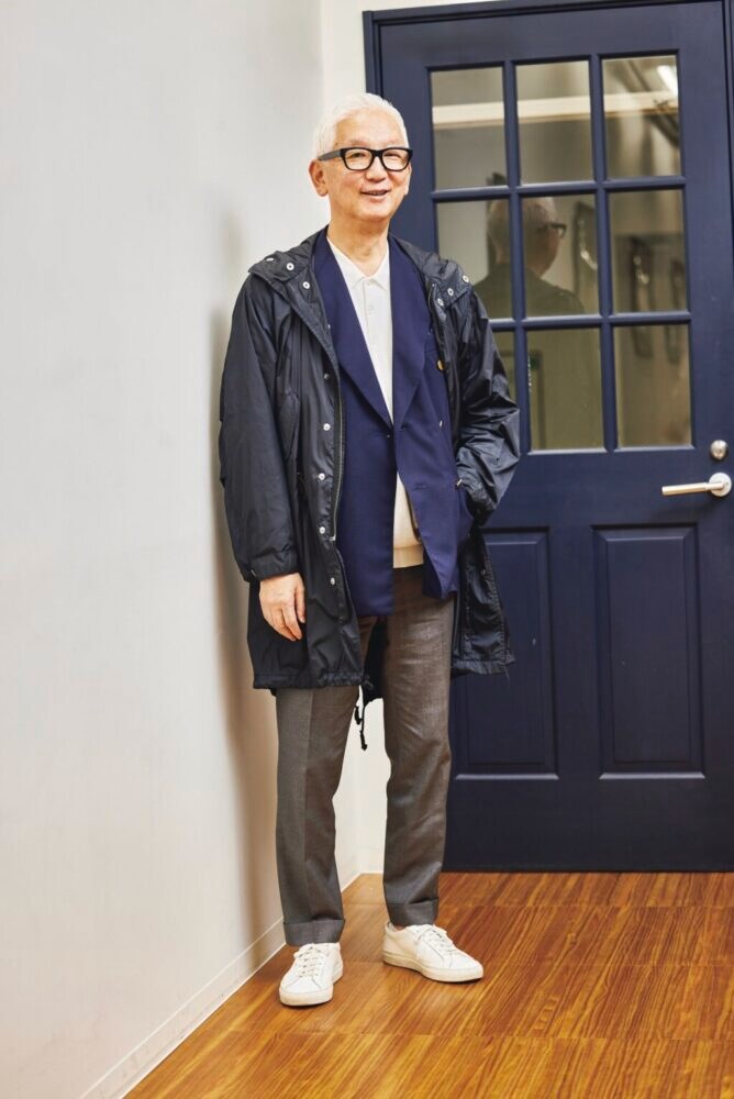 2010年頃には、ダッフルコートで知られる「グローバーオール」を迎えたトリプルコラボモデルも製作。原さん自身は、「マルセル ラサンス」を起点としたコラボフィッシュテールコートを合計で6着も所有してきた。紺ブレと合わせるのが原さんの流儀。