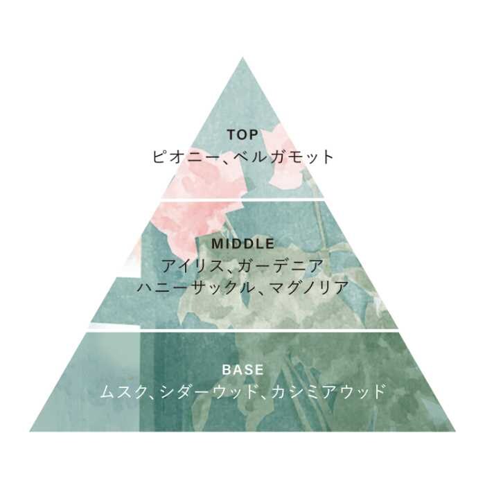 ピオニーやベルガモットが柔らかに香る、光をまとうようなフローラル。