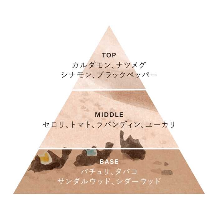 スパイスとウッディが溶け合う、温かく包み込むような香り。