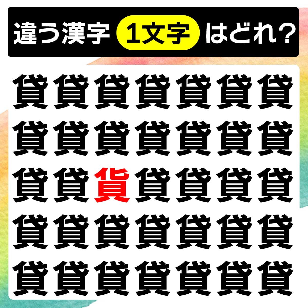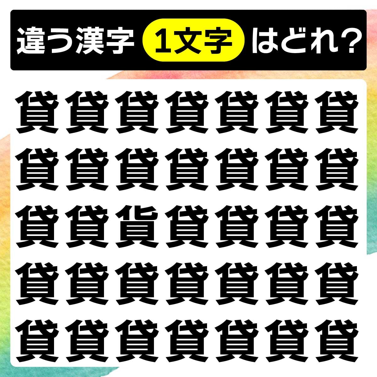 違う漢字は、上から3列目、左から3番目の文字でした!