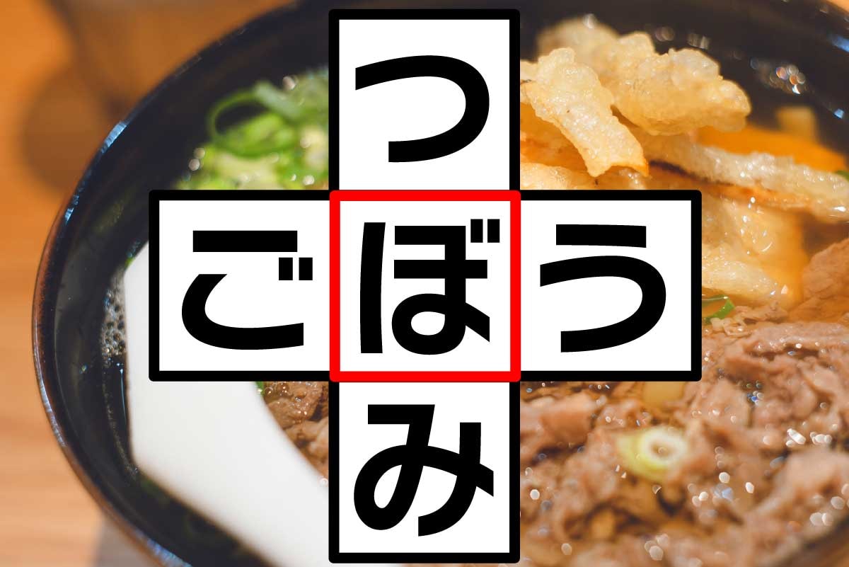 【問題】空欄に入るひらがなは? 【ヒント】タテ:咲く前の花の状態をなんという?ヨコ:「きんぴら」に使われる食材といえば……?