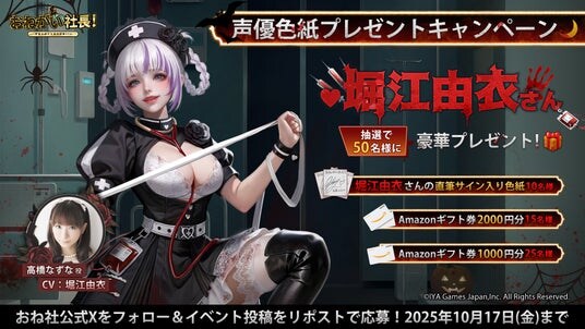 抽選賞品:堀江由衣さん直筆サイン入り色紙×10名様、Amazonギフト券2000円分×15名様、Amazonギフト券1000円分×25名様