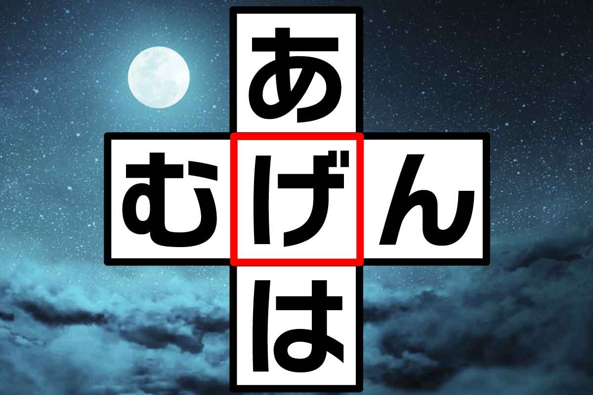 【問題】空欄に入るひらがなは? 【ヒント】タテ:羽に黄色と黒の模様がある蝶。ヨコ:限界がないことを表す。