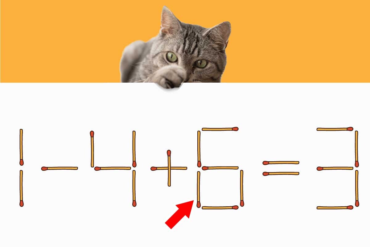 【問題】マッチ棒を1本動かして式を正しくしてください。