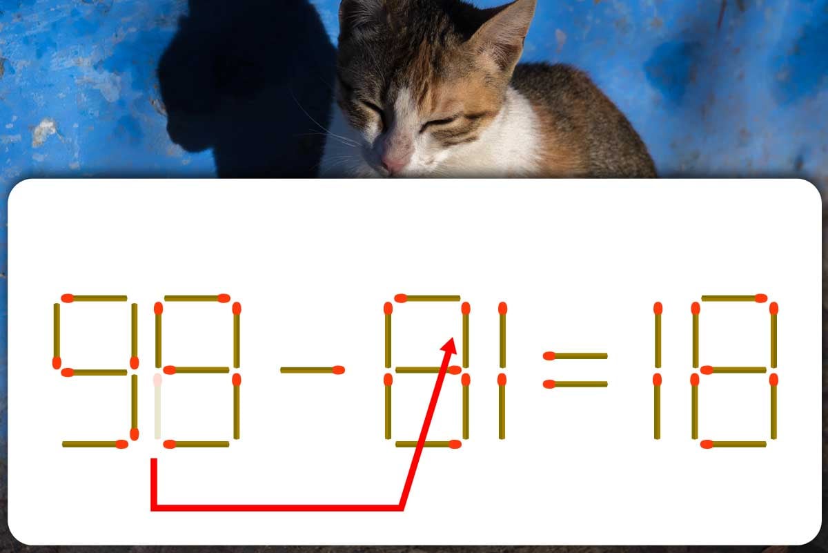 「8」のマッチ棒を1本、「6」に移動させて「8」を作り「99−81=18」にする。※解答は複数ある場合があります。