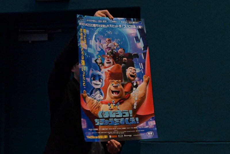 その後、イベントの締めくくりとして、七海さんが挨拶。足元の悪いなか来場してくれた観客への感謝を述べるとともに、くまじろう、くまたろうと一緒に先行上映会で挨拶できたことへの喜びを語った。