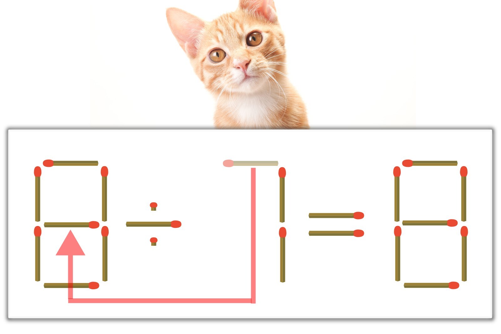 「7」のマッチ棒を1本、左にスライドさせて「8」を作り、「8÷1=8」にする。※解答は複数ある場合があります。