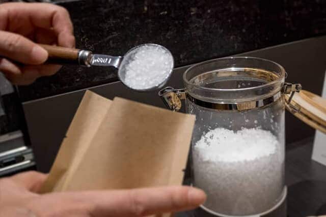 バスソルトを紙袋に入れるのも、ちょっとゴージャスな気分です。睡眠2時間前を目安に利用すると入眠しやすくなるのだとか。もちろん素材は塩分なので入れすぎには注意です。