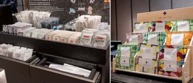 歯ブラシや髭剃り、3種類用意される基礎化粧品、コーヒーのドリップバッグなど、必要なものはアメニティーバーからピックアップ。さらにフロントには「 ART OF TEA 」の紅茶や緑茶、フレーバーティーなどのティーバッグを用意しています。