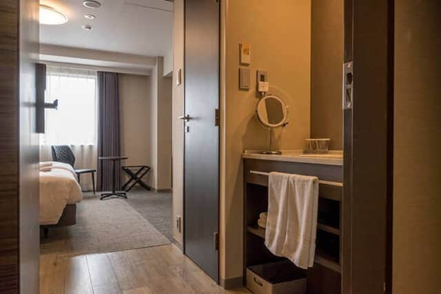 セパレートタイプの洗面は、ゆとりがあって持参したアメニティーなどを置くスペースも十分ありました。ライティングミラーが置かれているのも嬉しいポイントです。