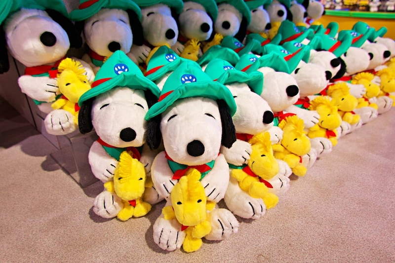 「スヌーピー・スタジオ・ストア」では、アウトドアテイストの新作グッズがずらり。特に注目は「ビーグル・スカウト」をモチーフにしたシリーズです。