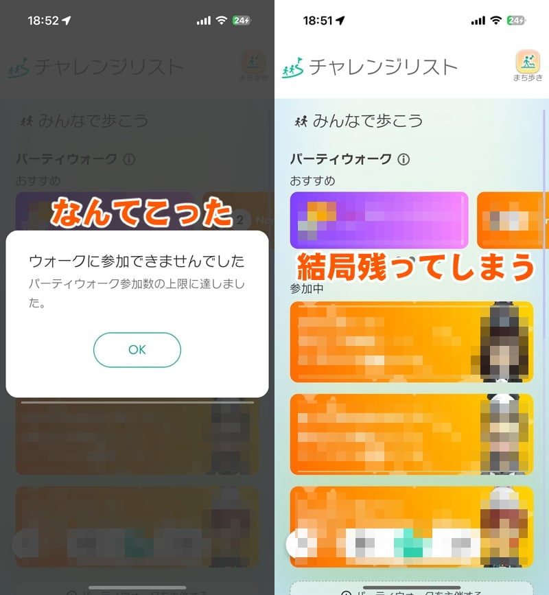 それが、すでに参加上限に達していると“ウォークに参加できませんでした”という通知のみが表示。