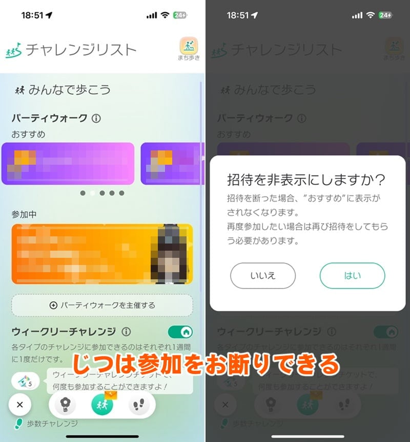 チャレンジリストを開くたびに放置したままの招待を目にするのが忍びない。