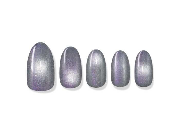 「SELF PRODUCE NAIL COLLECTION」は、水光ネイルのような透明感のある仕上がりに、ホログラム×シルバーのポイントネイルシールを重ねて自分好みにデザインできる新シリーズ。