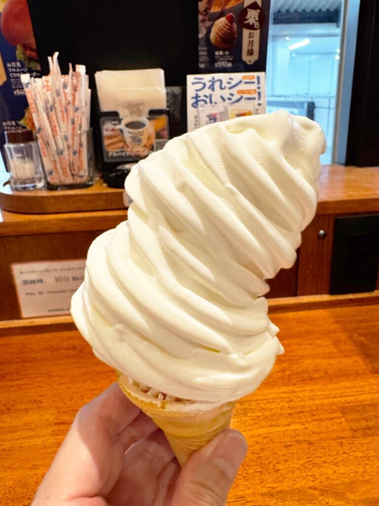 食べた瞬間に広がるバニラの薫りと濃厚なミルク感は、コメダ珈琲店の唯一無二の魅力。コーン部分がワッフルではなく、しっかり昔ながらのコーンを使用している点も、かなりソフトクリーム愛を感じます。