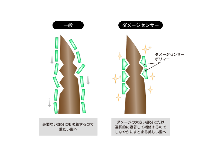 一方、&be リペアレスキュートリートメント(200g/1,760円)は、ダメージセンサーポリマーが損傷部分に選択的に吸着して補修。