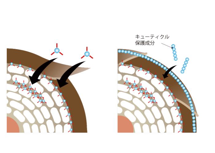 カラーやパーマ、ドライヤー熱によってダメージを受けやすい髪において、内部の「CMC(細胞膜複合体)」の崩れは、うねり・パサつき・広がりの原因に。