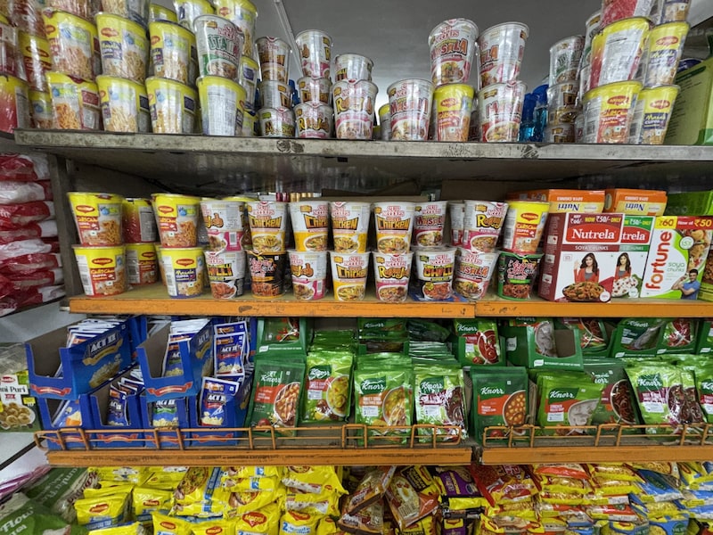 実際にインドのスーパーマーケットに行ったところ、カップヌードル以外のインスタントラーメンも無数に売られていました。確かに、なかでもカップヌードルが人気のようです。