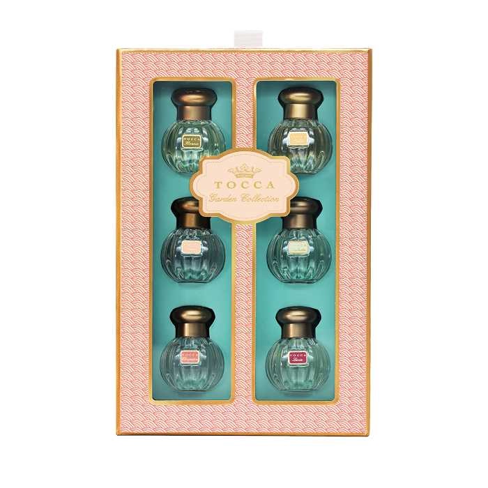 5mLボトル×6種の豪華セット。フローレンス、ステラ、シモネ、ジュリエッタ、クレオパトラ、ルチアといった人気香りが勢ぞろい。ガラスボトルのレリーフキャップがエレガントな印象を添えます。