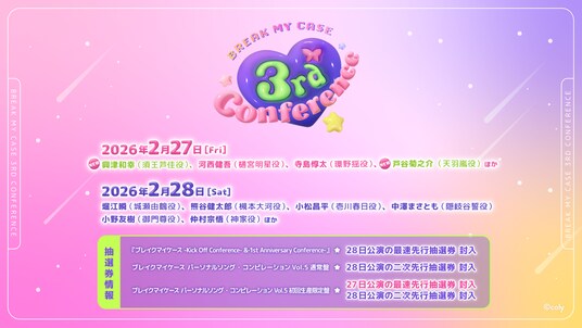 なお、2026年1月に発売予定の『ブレイクマイケース サウンドウェイブ・コレクション Vol.2』に、本イベントの最速先行抽選権が封入されております。
