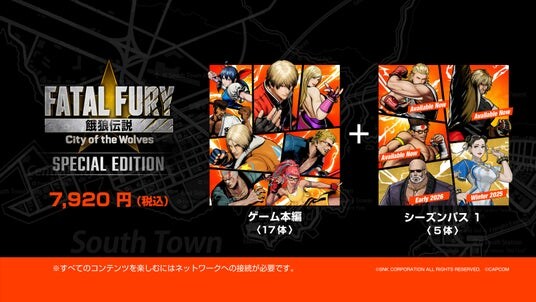 DLCキャラクター「ジョー・東」をはじめ、『ストリートファイター』シリーズの「ケン」、「春麗」などが楽しめるシーズンパス1がセットになった『餓狼伝説 City of the Wolves』 SPECIAL EDITIONを好評発売中!
