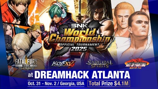 「SNK World Championship 2025 (SWC 2025)」は、SNKの格闘ゲーム4タイトル、『餓狼伝説 City of the Wolves』、『THE KING OF FIGHTERS XV』、『SAMURAI SPIRITS』、『ART OF FIGHTING 龍虎の拳 外伝』のeスポーツ世界大会です。大会は、2025年10月31日から11月2日にアメリカ・アトランタでおこなわれる「DreamHack Atlanta」内で開催。世界各地域の予選大会を勝ち抜いた招待選手と、SWC 2025内で開催される最終予選(LCQ)の上位選手が、世界No.1の座を競います。予選大会も合わせた賞金総額は、$4,100,000以上!SNK格闘ゲームの祭典にご期待ください。