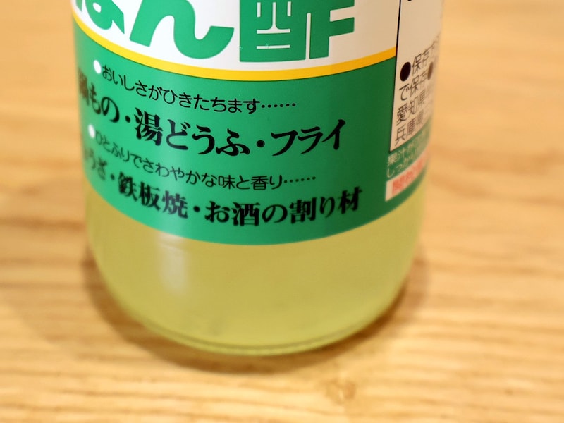 ミツカンのぽん酢というと「味ぽん」を思い浮かべる人が多いかもしれませんが、使うのは黄緑色のぽん酢です。