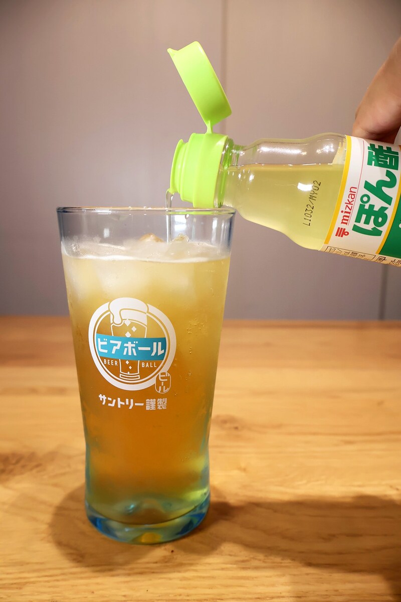 続いて、ビアボールにミツカンのぽん酢も入れます。