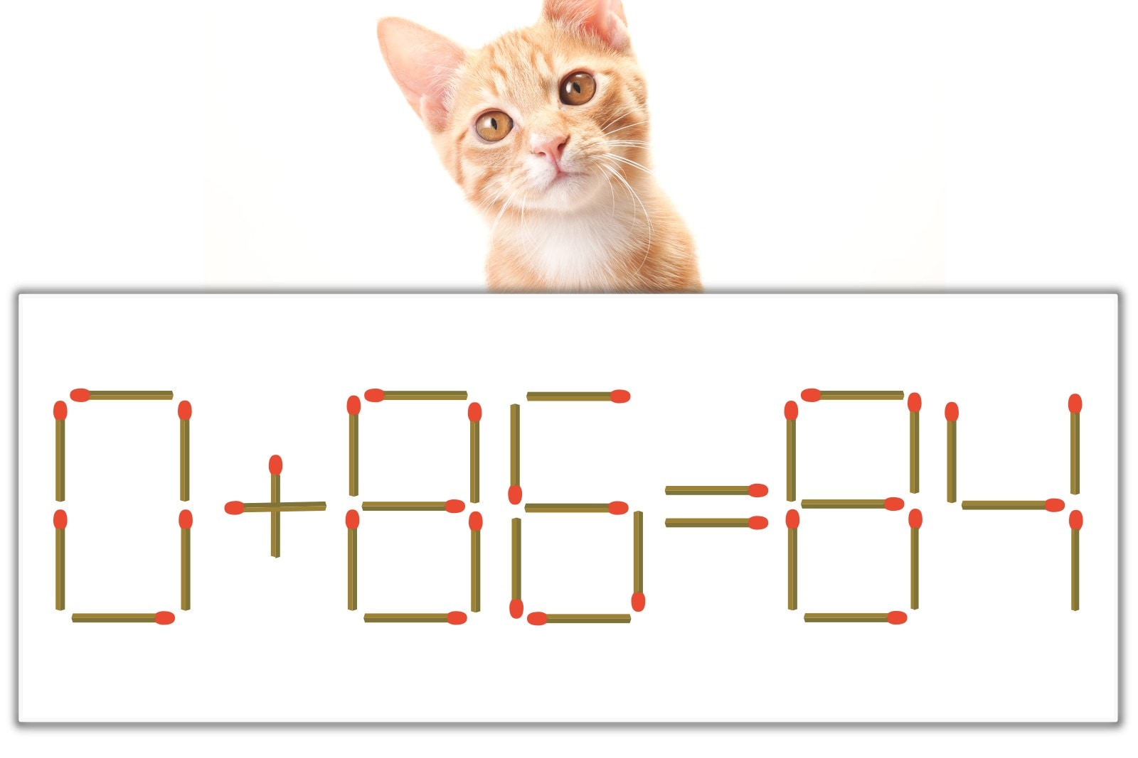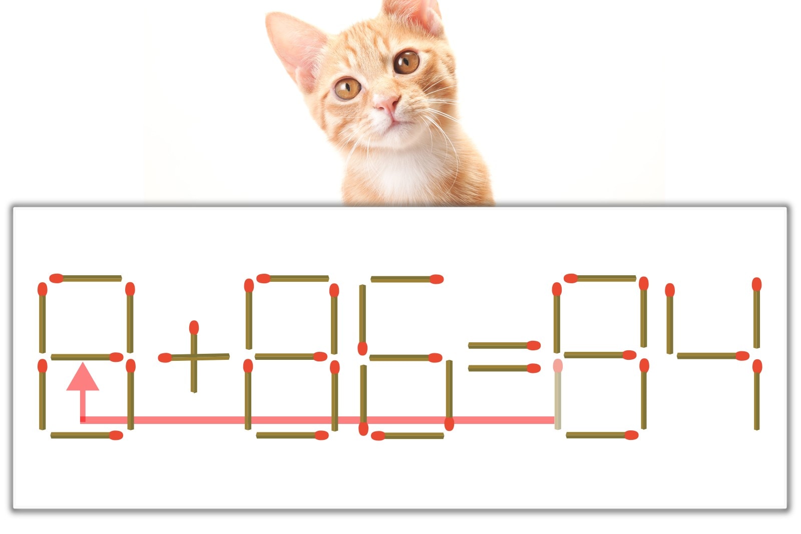 解答の「8」を別の数字に変化させると答えが導き出せます。8のマッチ棒を1本左へ移動させて、「0」を「8」にしてみましょう。すると、「8+86=94」が成立します。