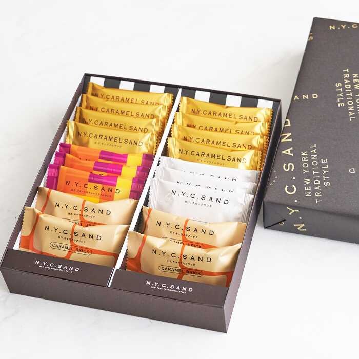 内容は「N.Y.キャラメルサンド」8個、「N.Y.スカッチサンド」3個、「N.Y.キャラメルブリック」4個、「N.Y.スイートポテトキャラメルサンド」3個の計18個。