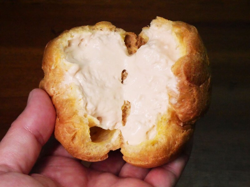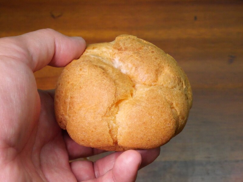開封してシュークリームを手にしてみると、なんというか、シュークリーム好きの気持ちをよくわかっている、まさに正統派なシュークリームの形状。シュー生地の感触も絶妙で、手にした感触だけで脳内に「クリームと融合したイメージ」を浮かばせてきます。