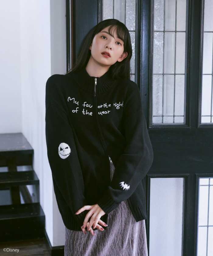 コレクションの目玉は、愛犬「ゼロ」のお墓やコウモリの刺繍が施された「ナイトメア/ダブルジップニットカーディガン」(税込¥5,999)。