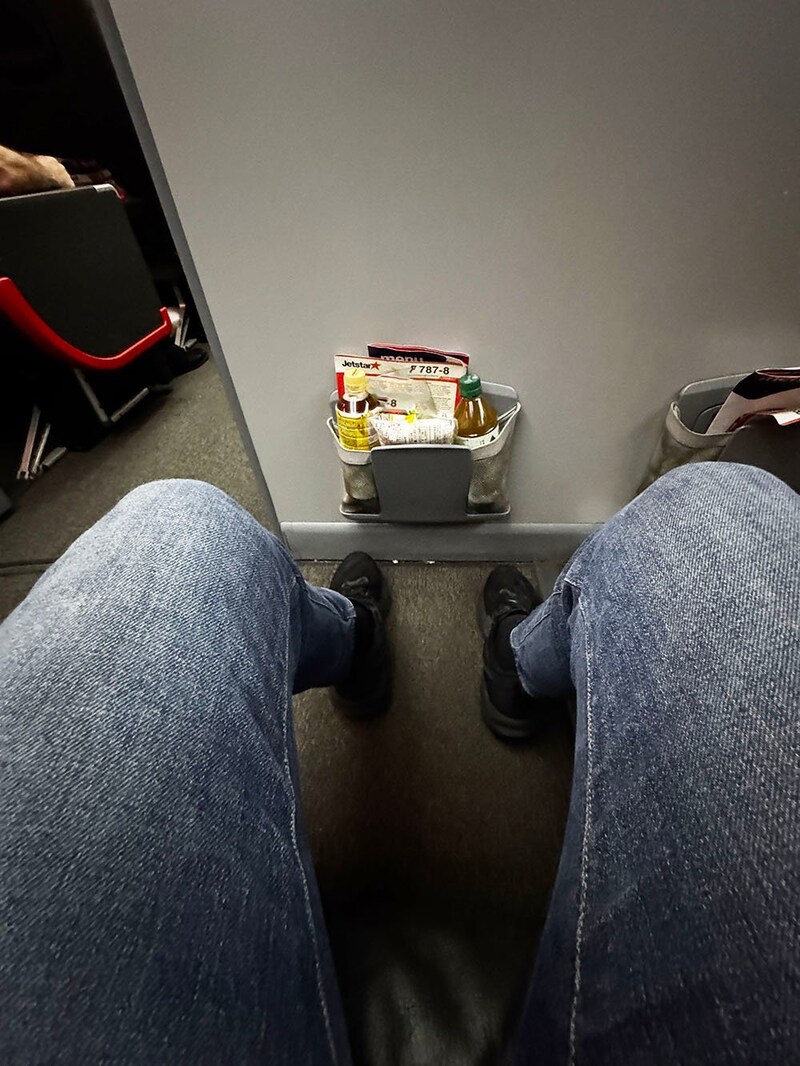 中央部の通路側の座席は、4時間以上の飛行でも快適だった。これが8時間以上、10時間以上差なれば、さらに快適さを実感できる。さらにベストな座席位置というのもあって、それは「前が壁の中央部の通路側」だ。