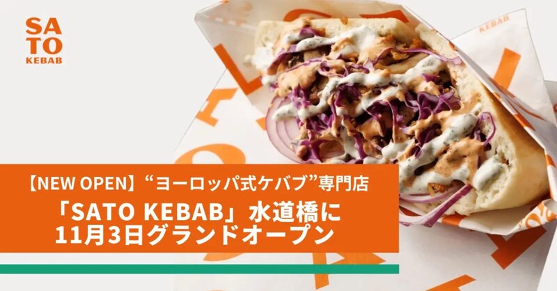そんなトルコ名物のケバブですが、なんと、ヨーロッパ式ケバブという、極めて稀な(!?)グルメが注目を集めつつあります。2025年11月3日にヨーロッパ式ケバブ専門店「SATO KEBAB」(東京都千代田区神田三崎町2-11-2)がオープンするのです。
