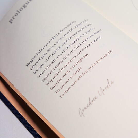 ゲームの主人公・ウルスラの言葉を綴ったプロローグ、ゲーム内のアイテムや豪邸のドアをあしらった扉絵、クラシカルで落ち着いた布張りの装丁など、細部にまでこだわったデザインとなっています。