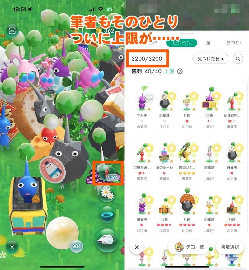 位置情報ゲーム『ピクミン ブルーム』におけるピクミンの取得上限は2025年10月13日(月)段階で3200匹。