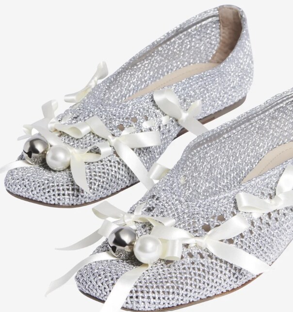 バレエシューズをモチーフにしたシェイプにリボンが組み合わさると、存在感のあるアイテムでも