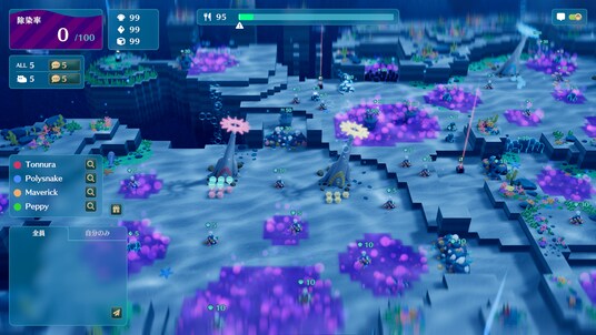 除染が進むとサンゴが芽吹き、光が差し、海は少しずつ鮮やかな色を取り戻す。そして合計40種超の「鑑賞生物」が回遊をはじめ、海を彩る。除染に励み、鑑賞生物の全種類コンプリートを目指せ!