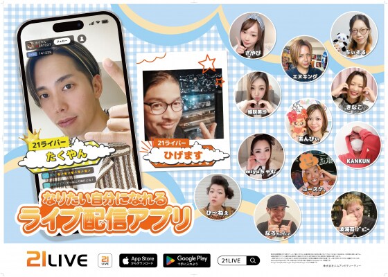 ポスターに掲載しているライバーの配信は、21LIVEのアプリ・サイトでご覧いただけます。